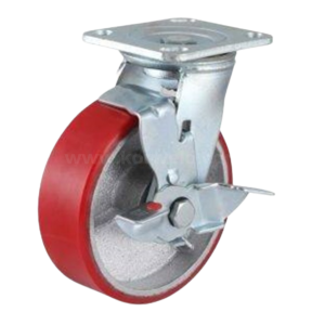 Heavy Duty Red PU Caster – Swivel with Side Brake